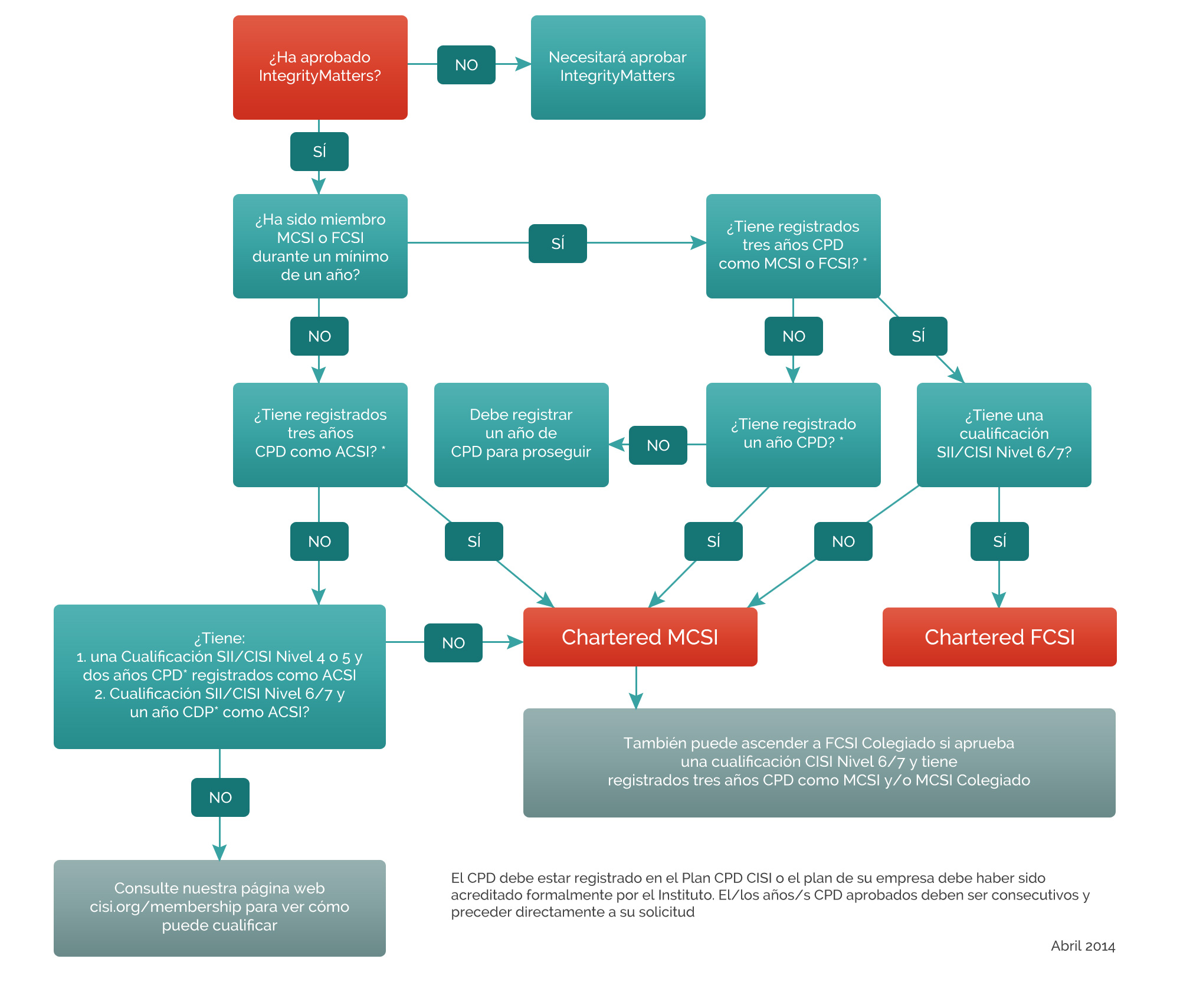 El CISI ofrece dos grados de membresía colegiada, Miembro de pleno derecho Colegiado (MCSI